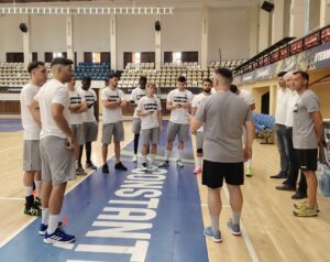 Prima parte a ședinței de pregătire a avut loc sub coordonarea noului membru al staff-ului tehnic, Alexandru Axinte, profesor universitar și lector EHF, care este noul antrenor secund.